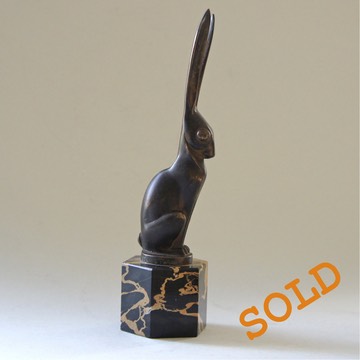 Description: Fine stylised bronze Bercquerel car mascot for Etling Paris mounted on a