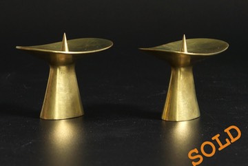 Description: Attractive pair of solid, heavy duty brass candlesticks, in typical modernist